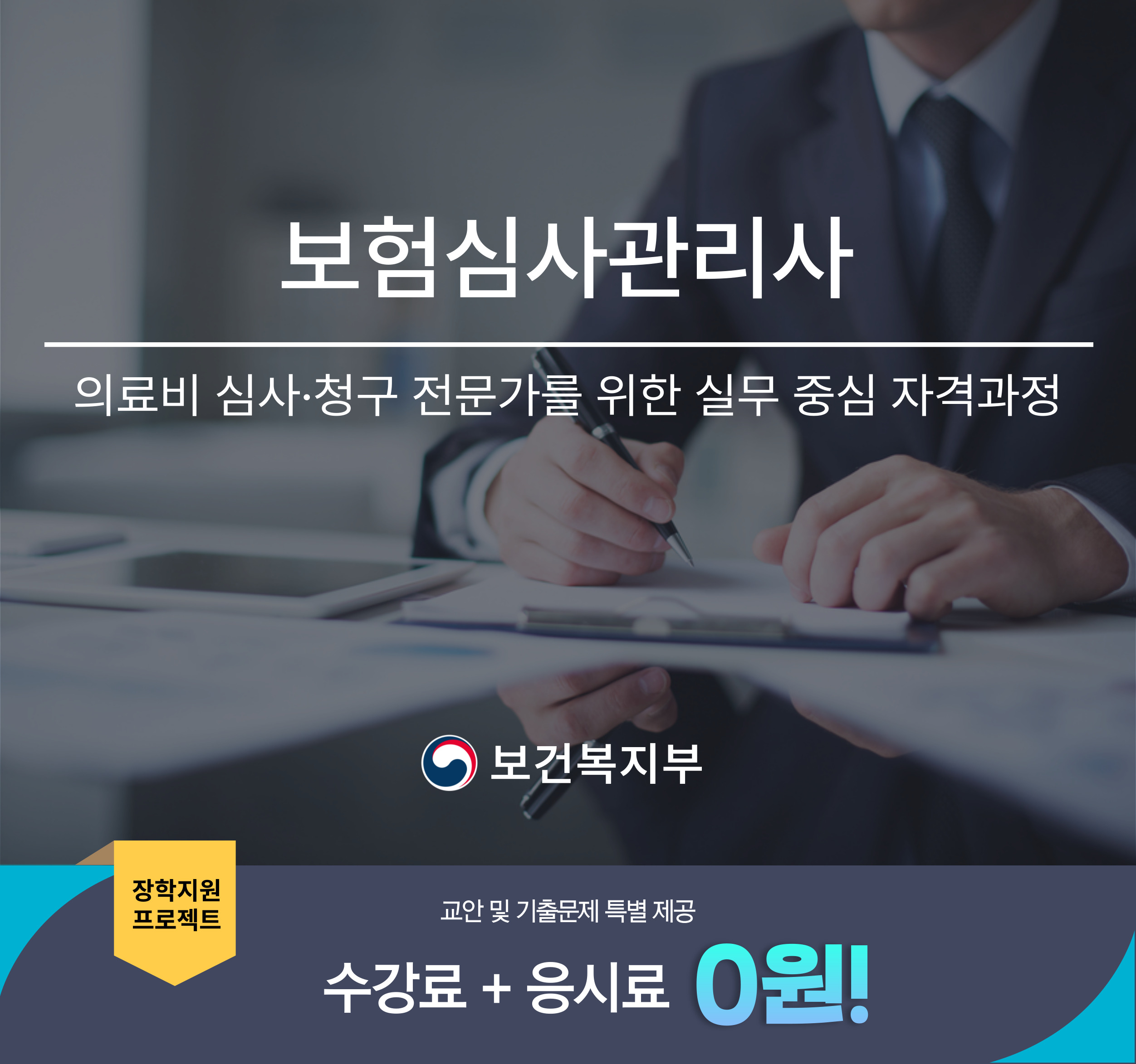 보험심사관리사 과정에서는 진료비 심사·청구에 필요한 보험제도 전반과 의료코드(KCD, ICD), 심사평가기준, 적정성 판단 등의 이론과 실무 지식을 함께 배웁니다. 또한 병원 원무과나 보험회사에서 실제로 수행하는 진료비 청구, 보험심사 서류 검토, 부당청구 예방 등의 업무 절차도 학습합니다. 즉, 보험심사관리사는 의료기관이나 보험사에서 진료비의 적정성을 판단하고, 보험금 지급 여부를 검토하는 전문가로 활동하게 됩니다.