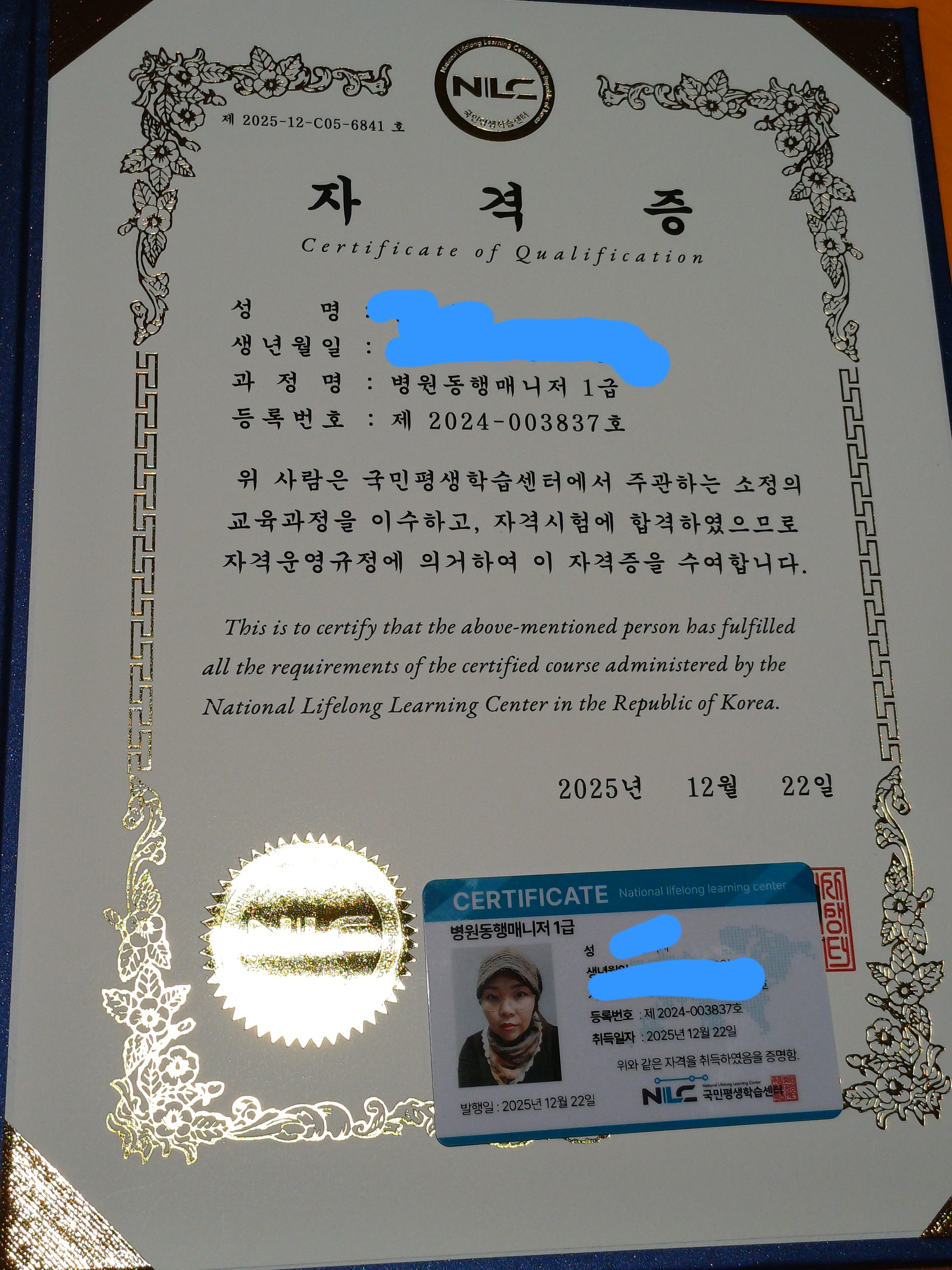 간병인으로 일자리를 찾던 중에 국민평생교육원의 간병사강의실로 들어가서, 김유인 교수님의 탁월한 강의를 듣고서 간병인으로서 갖춰야할 소양에 대해 공부할 수 있어서 감사하고 기쁩니다. 엄동에 따스한 방에서 시험에 바로 응시하여 자격증 까지 취득하게 되어, 대한민국 국민이 된 긍지와 감사를 느낍니다. 이 강좌와 자격증제도를 만드신 분들께 깊이 감사합니다.